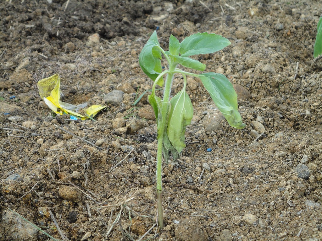 以前、種を蒔いたひまわりもずいぶん大きくなってきました。