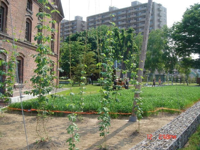これは先日札幌ビール園に行って来たときに大麦とホップがうえてありました。