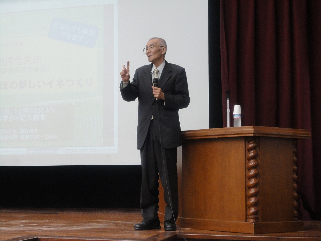 この講義は、日本不耕起栽培普及会の協力の下に行われ、講師には「岩澤信夫」先生、